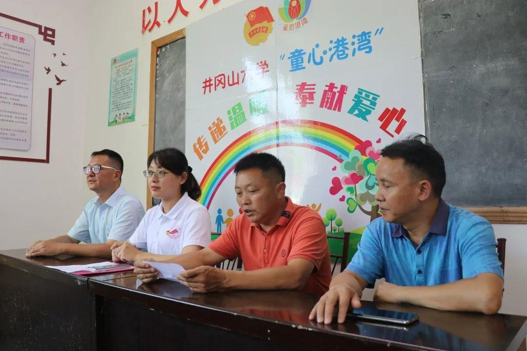 启动仪式由井冈山大学团委书记肖晓主持,肖晓代表井冈山大学对殷富村村民致以问候,并对留守儿童表达了殷切关怀。出席“童心港湾”启动仪式的还有研究生处处长刘清、团委副书记夏婷婷、井冈山大学驻殷富村第一书记宋耀东,殷富村党支部书记李世荣,井冈山大学驻殷富村工作队队员赵先明、徐海涛,殷富村党支部副书记刘先道,殷富村会计马伟祥、殷富村治保主任刘德其以及受助学生家长代表。