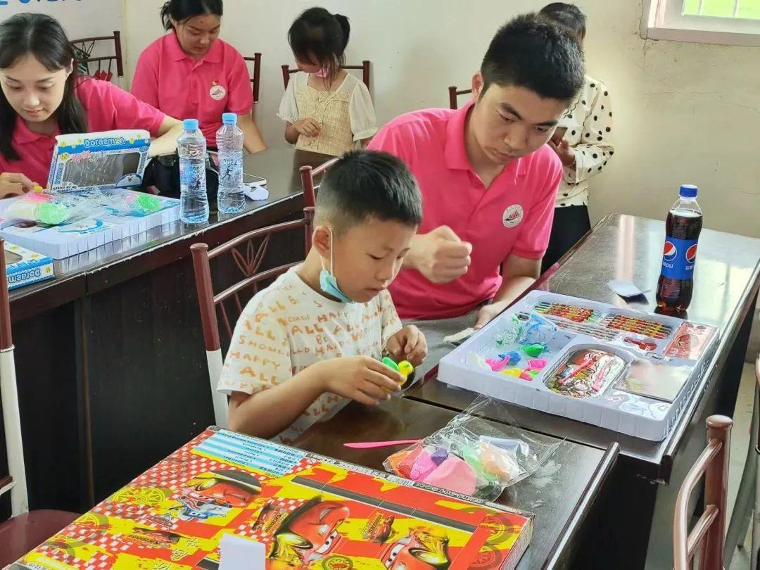 研究生志愿者通过做手工黏土拉近与留守儿童之间的距离,也许是大哥哥大姐姐们的友好与热情让孩子们感到温暖,孩子们也从一开始的害羞慢慢勇敢地和大家进行交流。