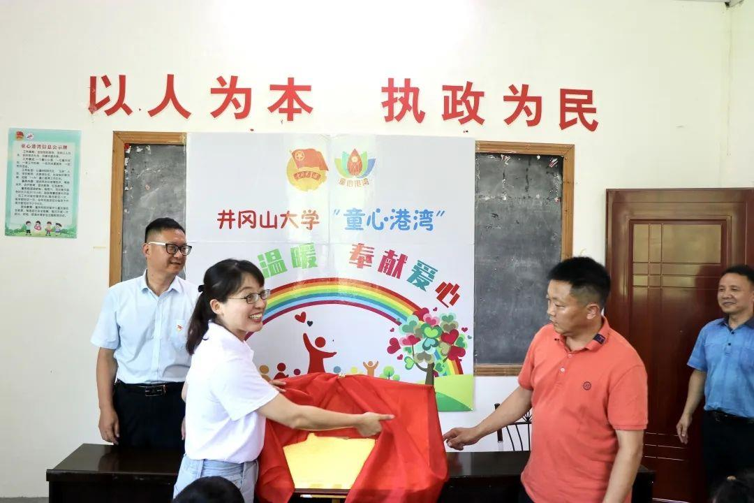 随后,殷富村村委会和井冈山大学实践团队共同为“童心港湾”项目揭牌。