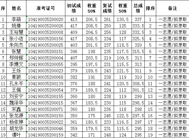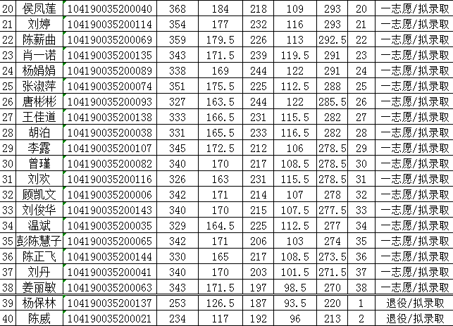 井冈山大学2020年社会工作硕士专业学位研究生招生入学考试拟录取名单