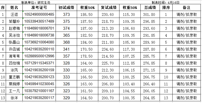 井冈山大学2019年社会工作硕士专业学位研究生第二次复试拟录取排序公示名单